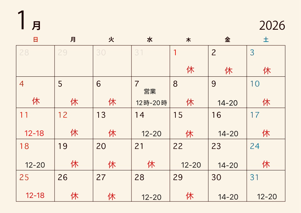 ❄️ 31日(土) 12時〜20時営業